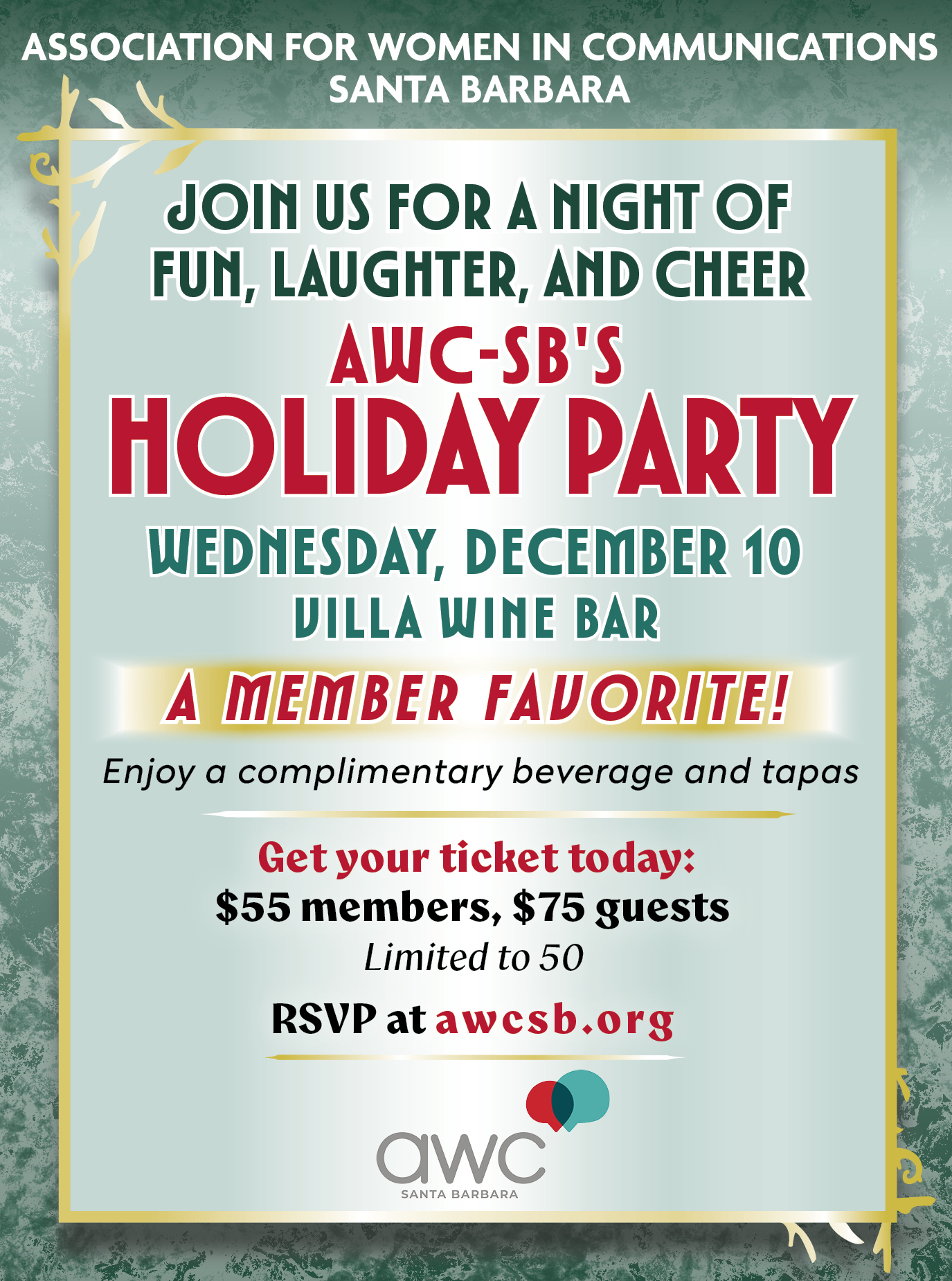 AWC-SB Holiday Party 2025 Villa Wine BarWednesday, December 10, 20255:30PM – 8:00…