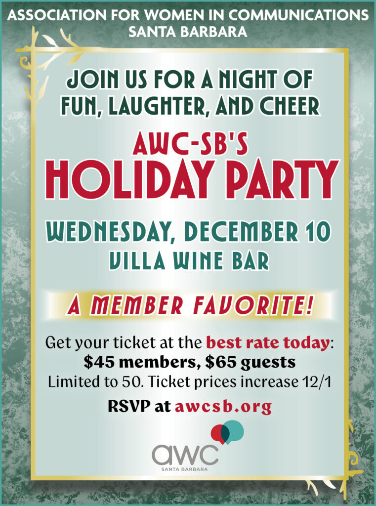 AWC-SB Holiday Party 2025 Villa Wine BarWednesday, December 10, 20255:30PM – 8:00 PM The festive season is coming up fast! Join AWC-SB for our annual Holiday Party, a favorite tradition. Your member or guest ticket includes a delightful spread of appetizers, complimentary drink ticket, and a chance to win fantastic drawing prizes. You can look […]