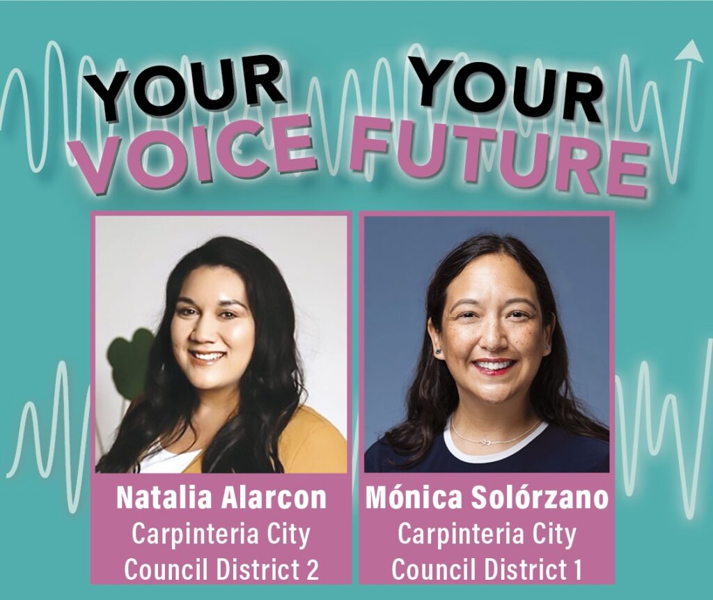 Your Voice, Your Future Wednesday, November 12, 5:30pm Your Voice, Your Future Join us to learn how communication plays a role in making change in our communities. Elected officials will share tips for the best ways to get your message across and how they communicate with constituents. Natalia Alarcon, Carpinteria City Council District 2 representative,
